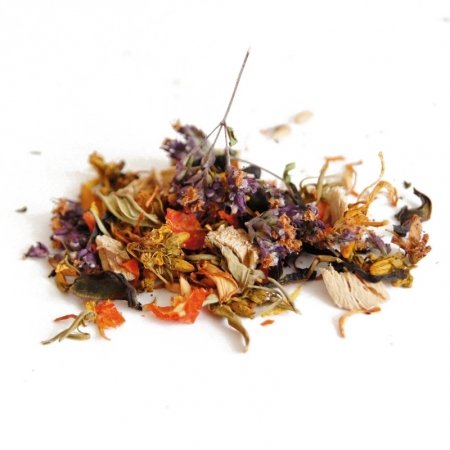 Чай для укрепления иммунитета из плодов шиповника, корня девясила, травы зверобоя и душицы.