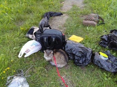 Прогулка с кошкой на улице