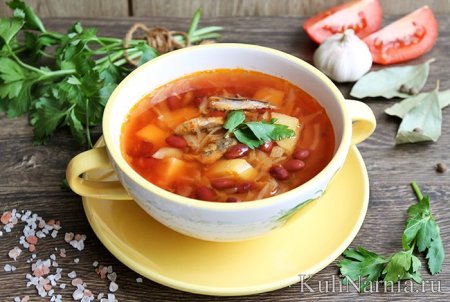 Борщ с фасолью и килькой