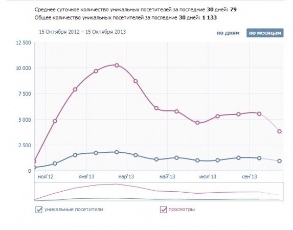 Целый год усердно искал интересных людей, команды, мероприятия, писал о специальных трассах, пытался собрать команду, но последнее не увенчалось успехом. Старался публиковать хоть один пост каждый день, но кажется, был один месяц (после которого на диаграмме виден резкий спад, когда я ничего не публиковал из-за ужасной депрессии). Так бывает, когда твои идеи не оправдывают себя. Сейчас снова взялся за проект, считаю, что он имеет право на жизнь и может быть успешным. Из приведенных ниже диаграмм мы можем видеть посещаемость, ца, и другие показатели. За год работы я смог собрать под своей идеей 1900 человек.