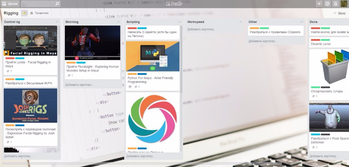 В ближайший месяц планирую серьезно заняться персонажным сетапом, и, как только достигну более-менее приемлемых результатов по скорости и качеству своих работ, попытаюсь устроиться на стажировку в одну из анимационных студий. Поработаю пару месяцев на безвозмездной основе, а там уже будет видно, что делать дальше...