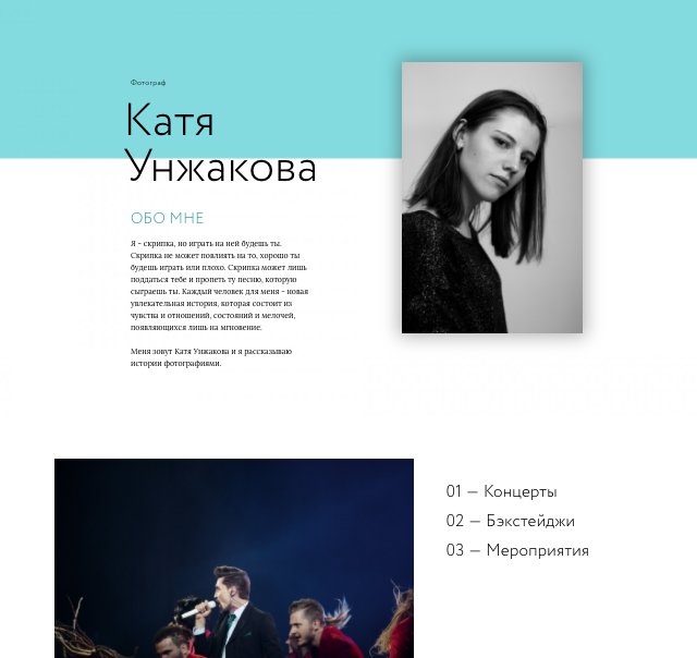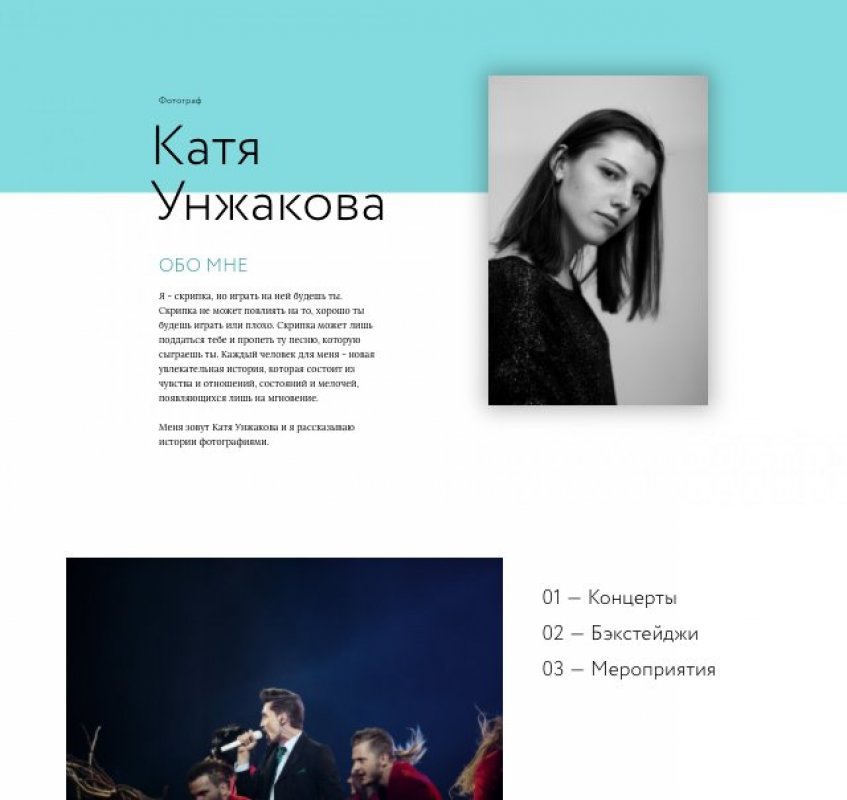 Сайт нужен для того, чтобы в одном месте был ответ на вопрос "кто она". Чтобы человек, который меня не знает, мог понять, чем я занимаюсь, чем я не занимаюсь, и подойдем ли мы друг другу идейно. Я хочу иметь возможность легко и быстро отправлять ссылку на мои работы, когда ко мне поступает запрос от потенциального клиента на фотосъемку. Также я хочу размещать свои посты не просто в фейсбуке, где невозможно ничего потом найти, а опять же в едином месте, чтобы можно было их читать в любое время.