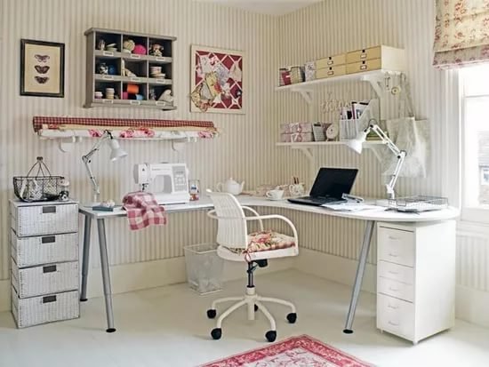 Давно мечтаю о собственном уголке) множество шкафов, швейная машинка своя, куча приспособлений для скрапа)))