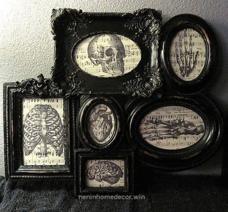 Покрасить имеющиеся рамки для картин в чёрный цвет и решить, какие картины там будут.