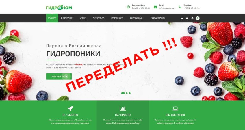Создание страница курса "Первый шаг в гидропонике"