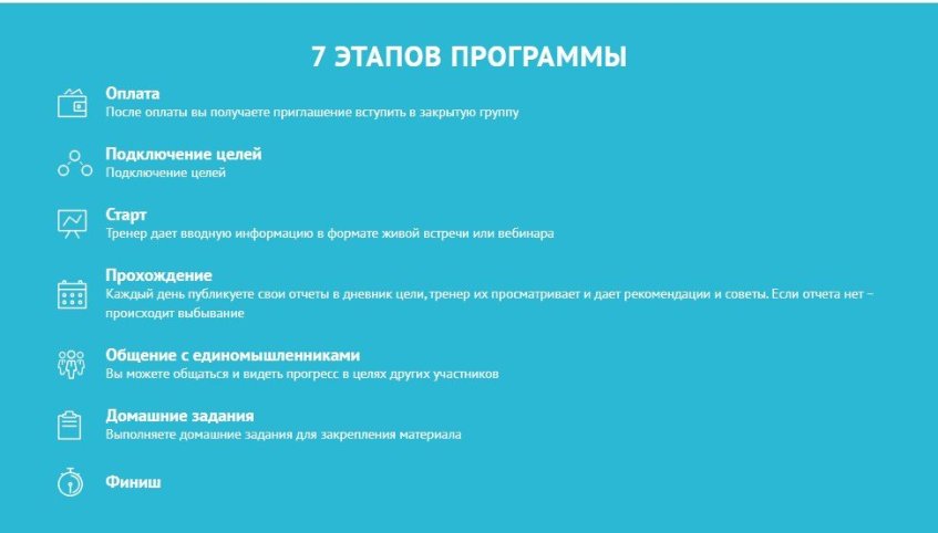 Автор курса пишет: - "Привет! Меня зовут Сергей. Примерно полгода назад я проводил такую программу. Достижение целей, желаний по принципу искусства маленьких шагов. Спокойно, не торопясь.