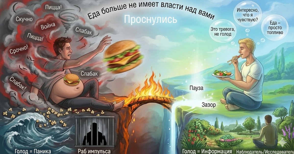 Эта цель — не про диету, не про подсчет калорий и не про запреты. Это фундаментальная перепрошивка отношений с едой. За 30 дней я планирую перейти из состояния «раба импульсов» в состояние «осознанного наблюдателя».