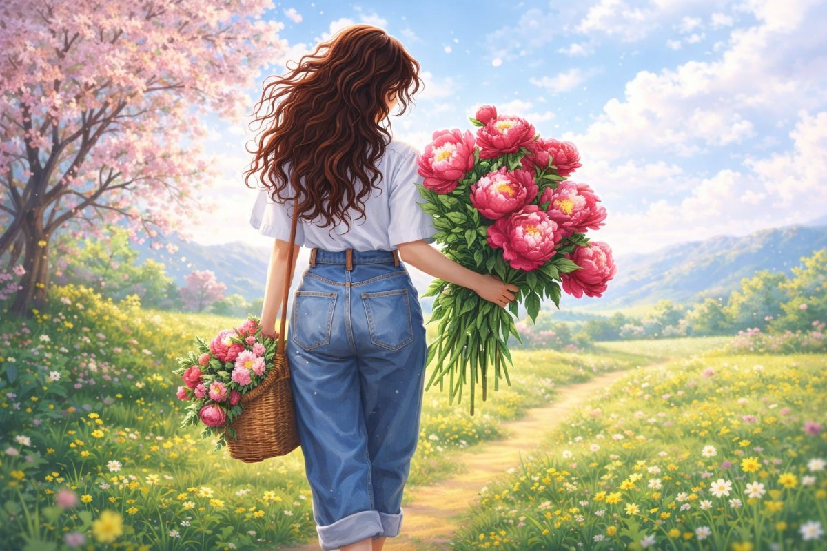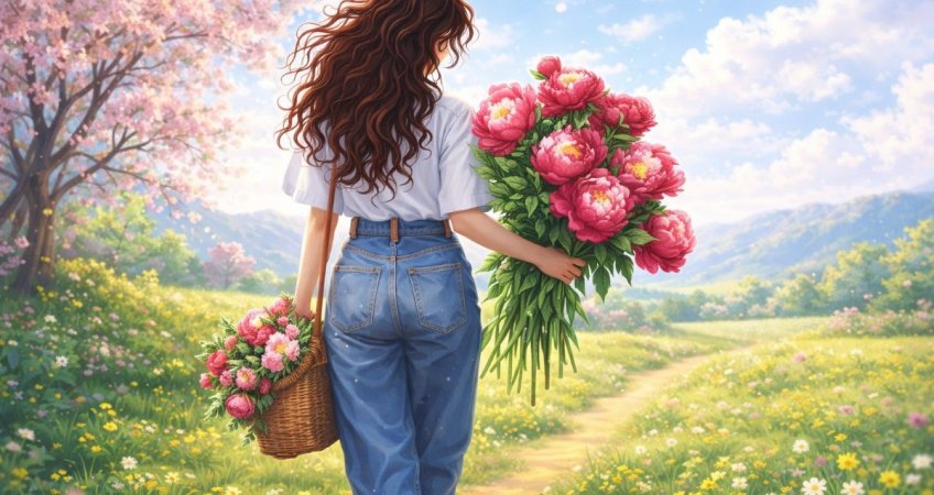 Вишивка: дівчина з піонами