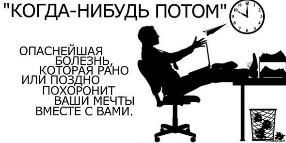 Человек находит массу причин не делать очень важную работу, откладывая оврал на последний момент, в подсознательном желании избежать стресса. Оказывается таким «заболеванием» болеют все люди в большей или меньшей степени. Разница лишь в том, что кто-то умеет преодолеть собственное сопротивление и все-таки сделать, что должно в обозначенные сроки, а кто-то теряет репутацию.