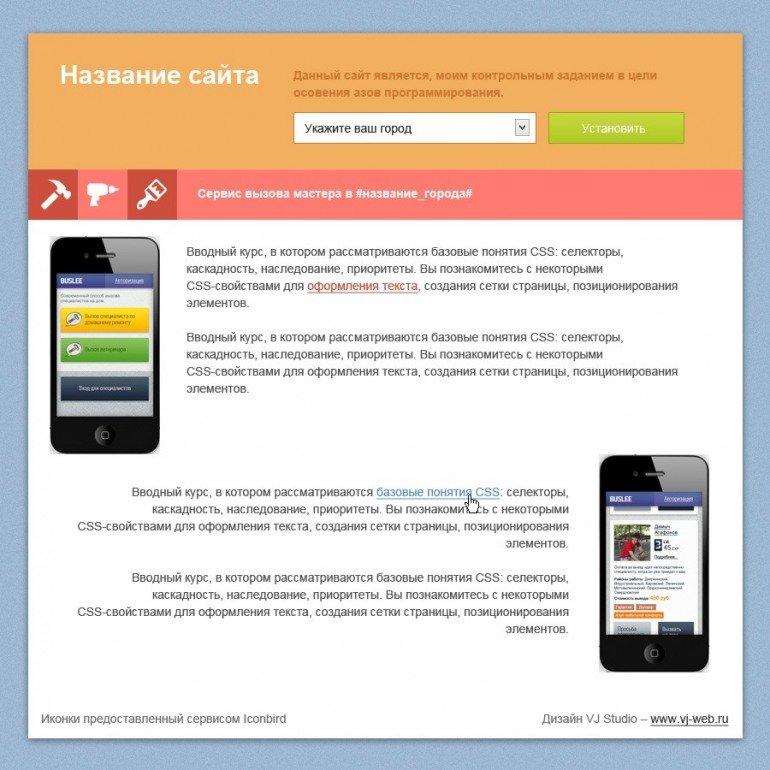Дабы все изученное закрепить, я составил небольшое итоговое задание, которое затронет все изученные вами этапы.
